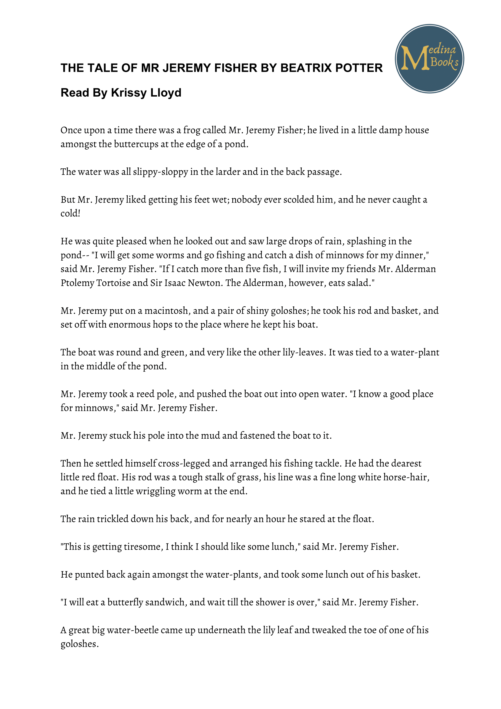 The Tale of Jeremy Fisher Read-Along Sheet